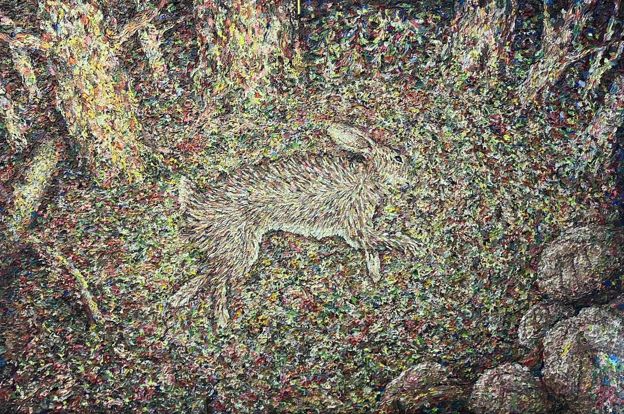 Dood konijn, 2023, eigen olieverf op linnen